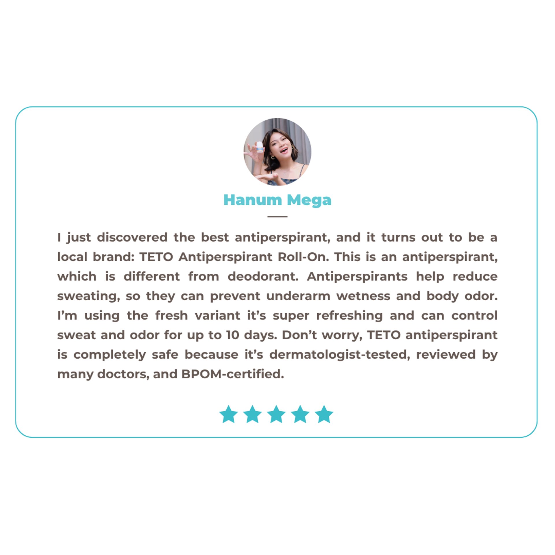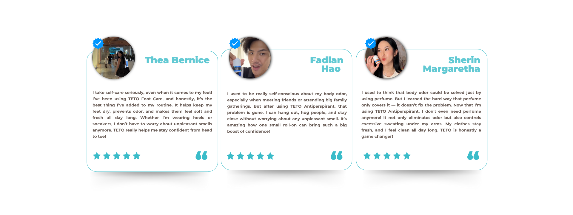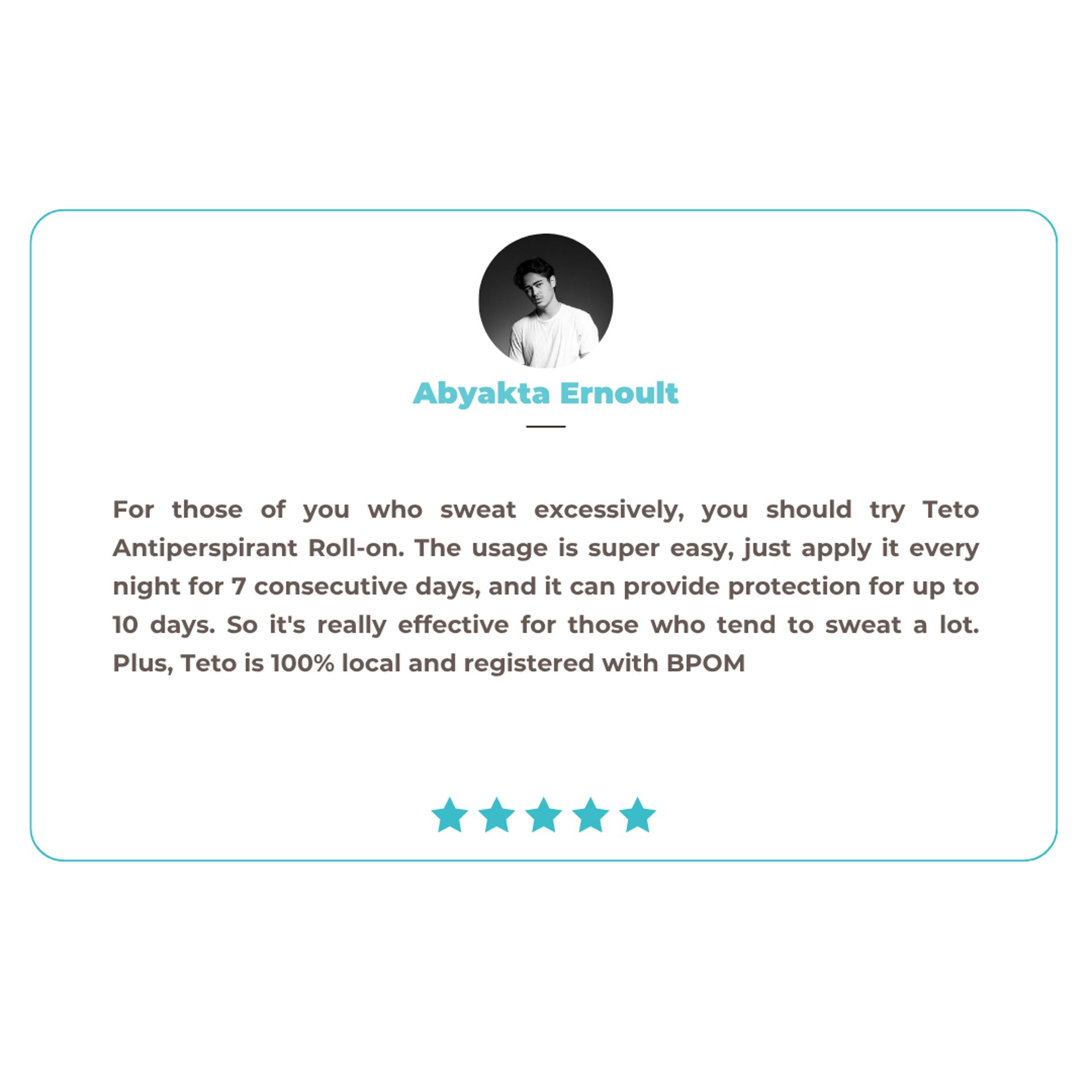 Teto was established in Indonesia since 2023, providing personal care product such as antiperspirant and foot care. Teto was founded with a vision to give soothing protection for your skin everyday.